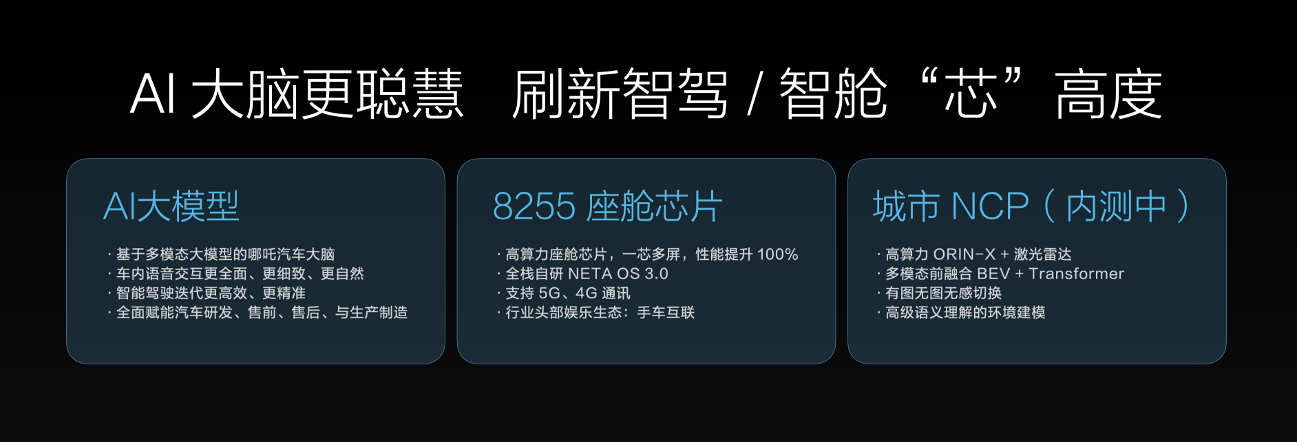 浩智滑板底盘还通过应用ISC减振器+空气悬架、零重力座椅和NETA SOUND,加码平台舒适度升级,给用户带来更高品质的出行体验。