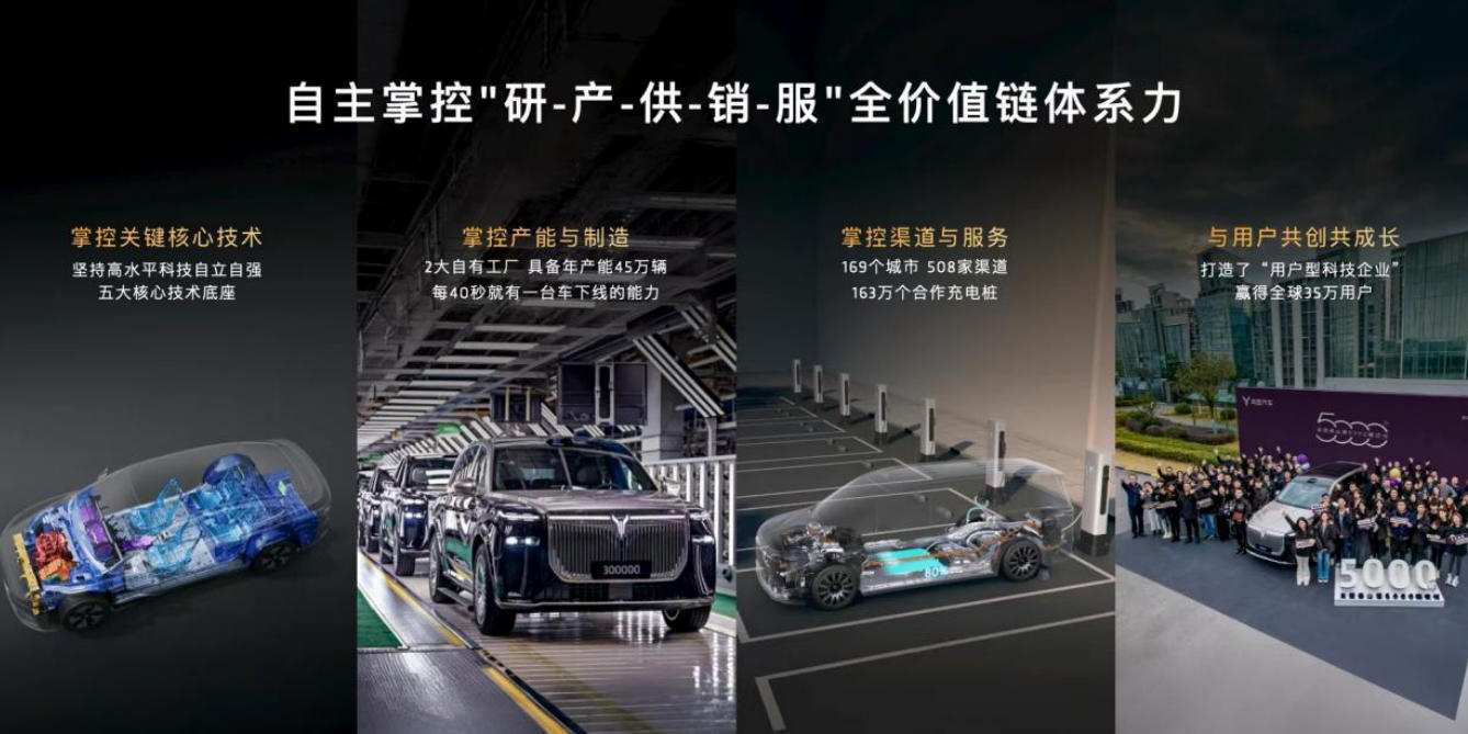 先看销量与体系底气:2026 年一季度岚图交付33892 辆,同比增30%;手握6102 件专利,两座国家级工厂年产能45 万辆,40 秒下线一台车;渠道覆盖169 城 508 家网点,合作充电桩163 万个,服务超35 万用户,真正实现研 — 产 — 供 — 销 — 服全价值链自主掌控,也是央国企高端新能源第一股。
