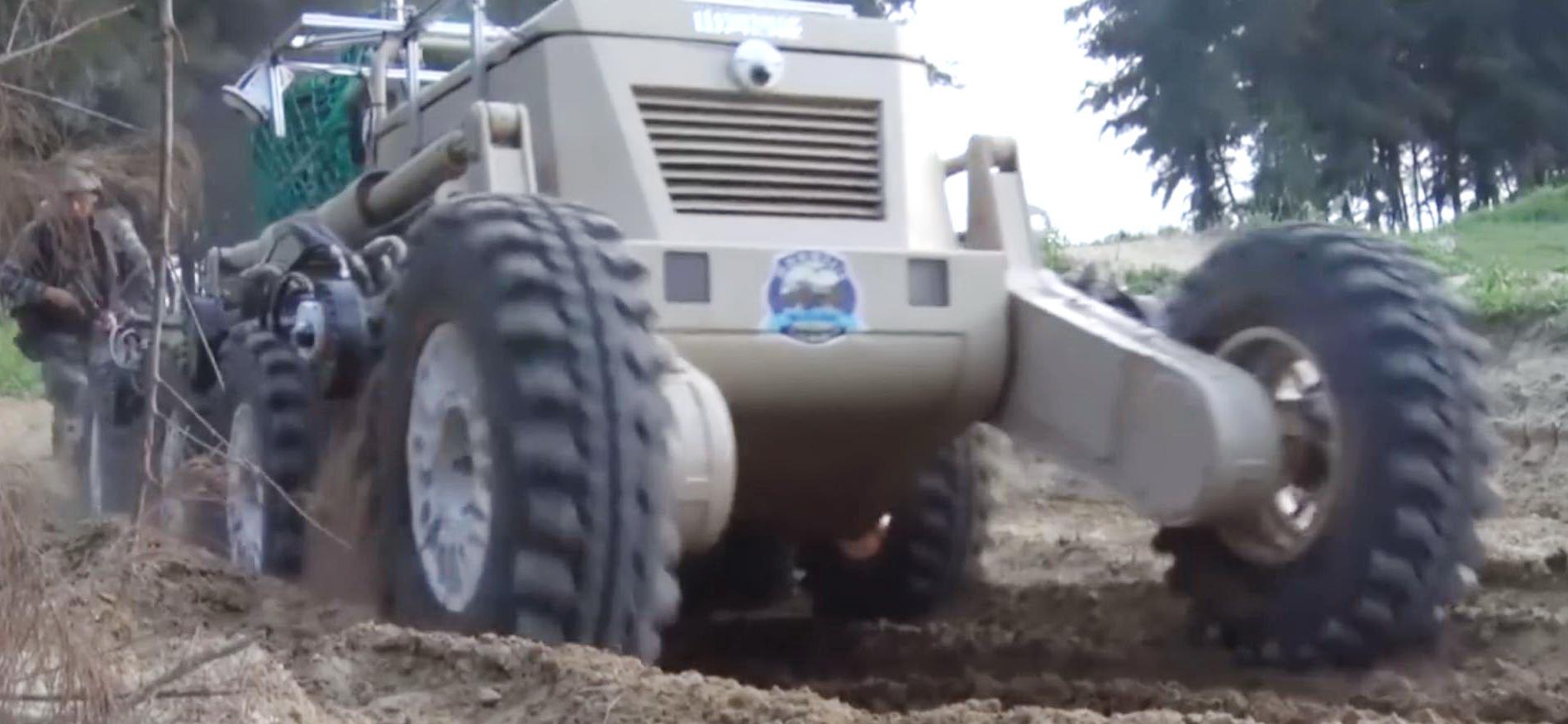 这款名为“龙马2号”高机动无人越野车由山河智能装备股份有限公司研发并制造,早在2018年就参加了“跨越险阻-2018”地面无人平台挑战赛。“龙马2号”高机动无人越野车具备翻阅1200mm高度垂直障碍物、具备跨越2000mm长度的壕沟、 大越野速度35公里/小时;采用机电液一体化驱动技术且第1、4驱动桥摆臂可以进行高度调整,适用于山地、丘陵、沟壑、高大山脉、沙漠荒原、雪原冰川等环境中承担物资运送任务。