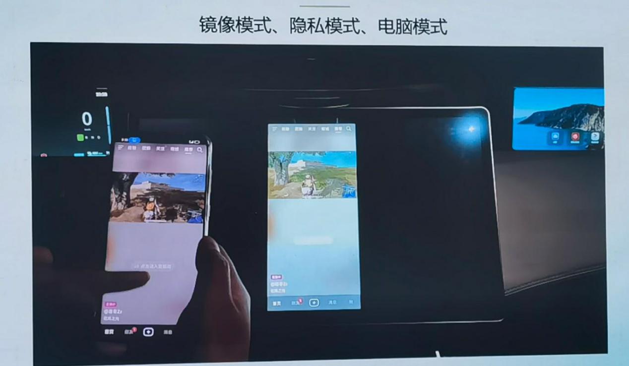 同样,鸿蒙座舱也支持跨设备流转,将中控屏与要流转的设备登录同一华为帐号,并开启“蓝牙”的条件下选择流转的设备即可实现功能跨设备协同操作,实现舱内舱外断点续播。