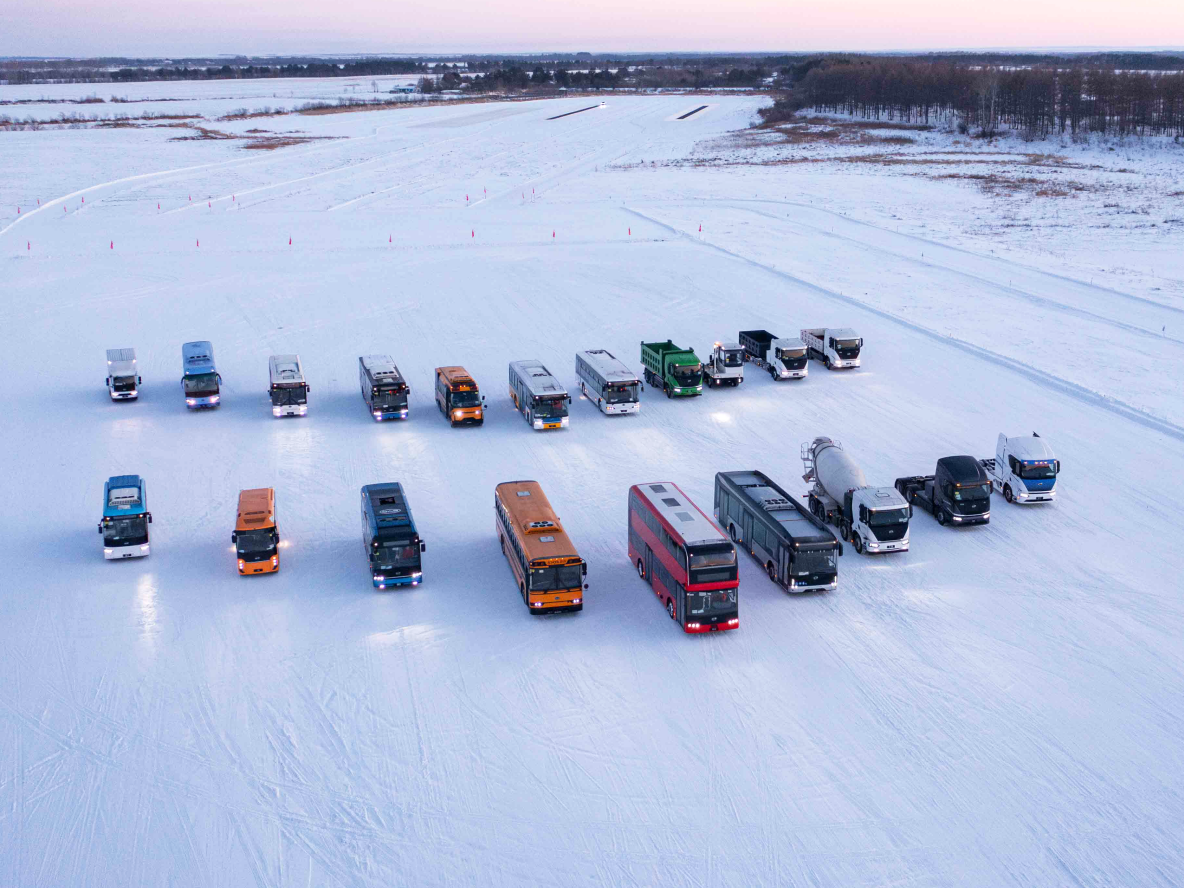 严苛试验锤炼卓越技术,极寒挑战见证极致品质。近年来,冬测愈发成为新能源车型综合性能考量的重要一环。2023年12月始,比亚迪商用车集结包括纯电动公交、座位客车、旅游车、轻卡、校车、牵引车、搅拌车、自卸车在内的国内外21款主推车型,勇闯极寒之境——黑龙江省黑河市,展开为期138天的高寒极限挑战,凭过硬实力完成了全天候极寒天气及各种路况下的可靠性及适应性测试,验证了新能源产品的极限性能。