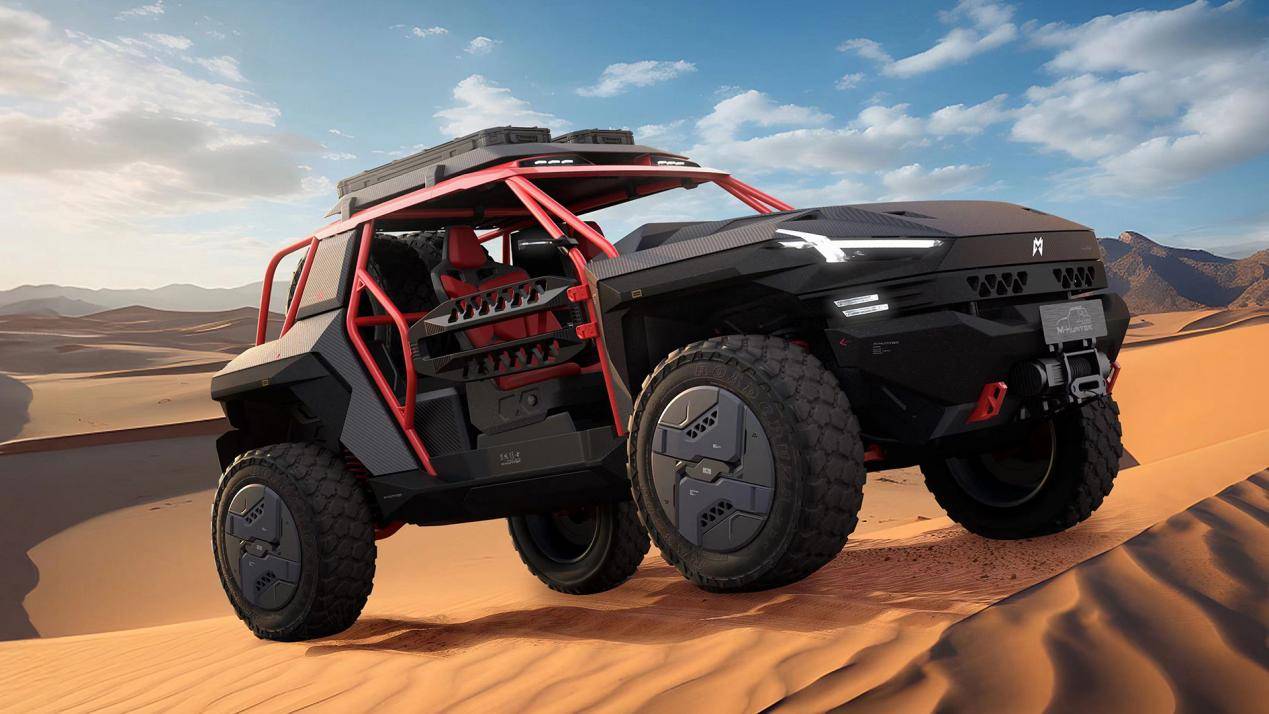 猛士M-HUNTER狩猎者开创了豪华越野赛道的多项第一。它是中国第一台轮边扭矩突破20000N·m的越野车,中国第一台采用全碳纤维车身的越野车,中国第一台基于猛士智能越野架构M TECH打造的管梁车,也是中国第一台采用军车级中央集中充放气系统的极限性能车。