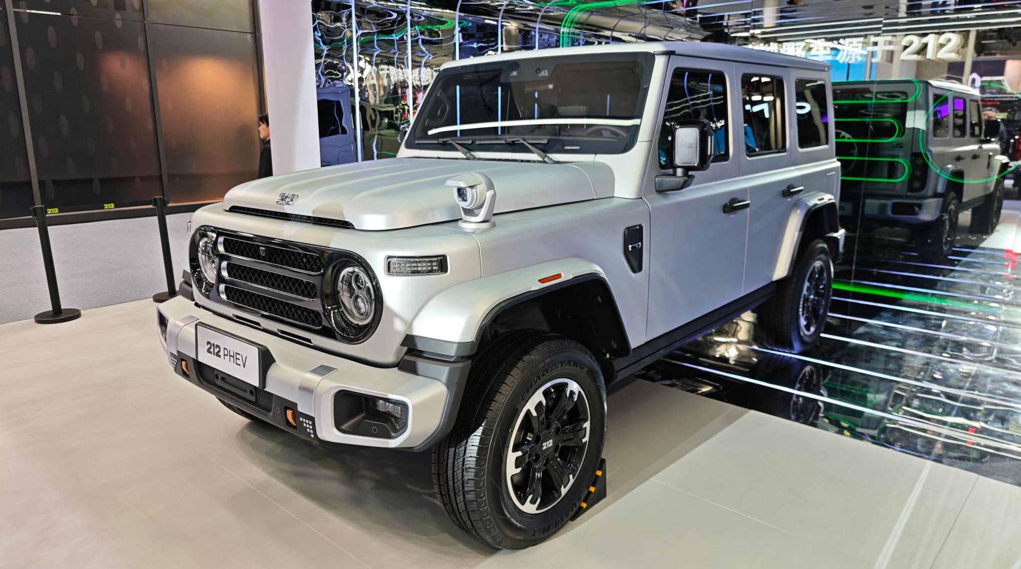 关于展台亮相的212 PHEV车型,何兆鹏回应技术疑问:“它采用P2架构,非主流增程式。核心优势是降低油耗、增强动力,并避免电池枯竭。”