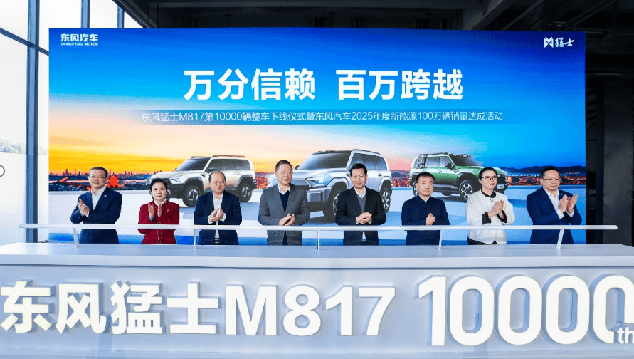 12月26日,东风猛士M817迎来第10000辆整车的正式下线。这一重要里程碑,与东风汽车在2025年高质量达成年度新能源汽车百万销量的整体跨越交相辉映,共同标志着东风汽车在新能源转型与品牌向上进程中,迈入了规模与质量协同发展的新阶段。对于猛士汽车而言,猛士M817万辆目标的达成,是其在智能越野赛道上的一次跨越,同时也吹响了新征程的号角。站上发展新台阶,猛士汽车锚定“智能越野”新蓝海,将全面开启“登峰行动”,通过“组织、产品、技术、生态”四个维度的系统变革,向着“豪华智能越野第一品牌”的目标全速攀登。