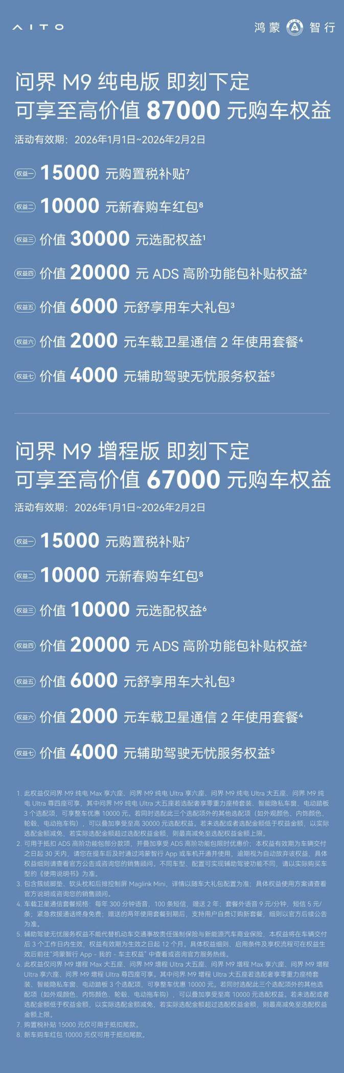 值此新春来临之际,问界M9特别推出多重购车礼遇,至高价值达87000元。新春新程,问界M9将继续秉承智慧重塑豪华理念,不断开创新能源汽车的全新境界,持续引领中国豪华车市场,陪伴更多用户及家庭安心启程、从容归家,共赴美好团圆年。