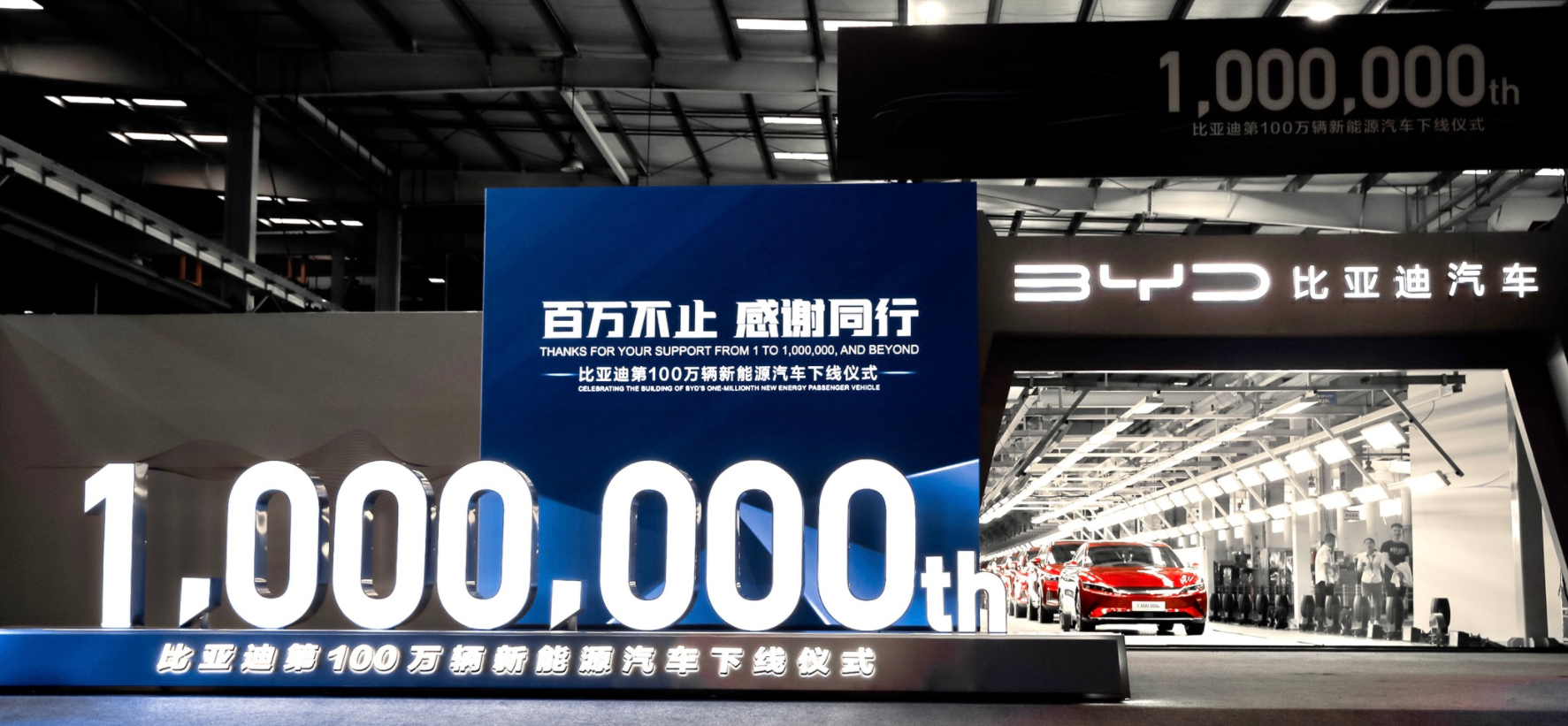 5月19日,比亚迪第100万辆新能源汽车正式下线仪式,成为首个进入新能源汽车“百万辆俱乐部”的中国品牌。